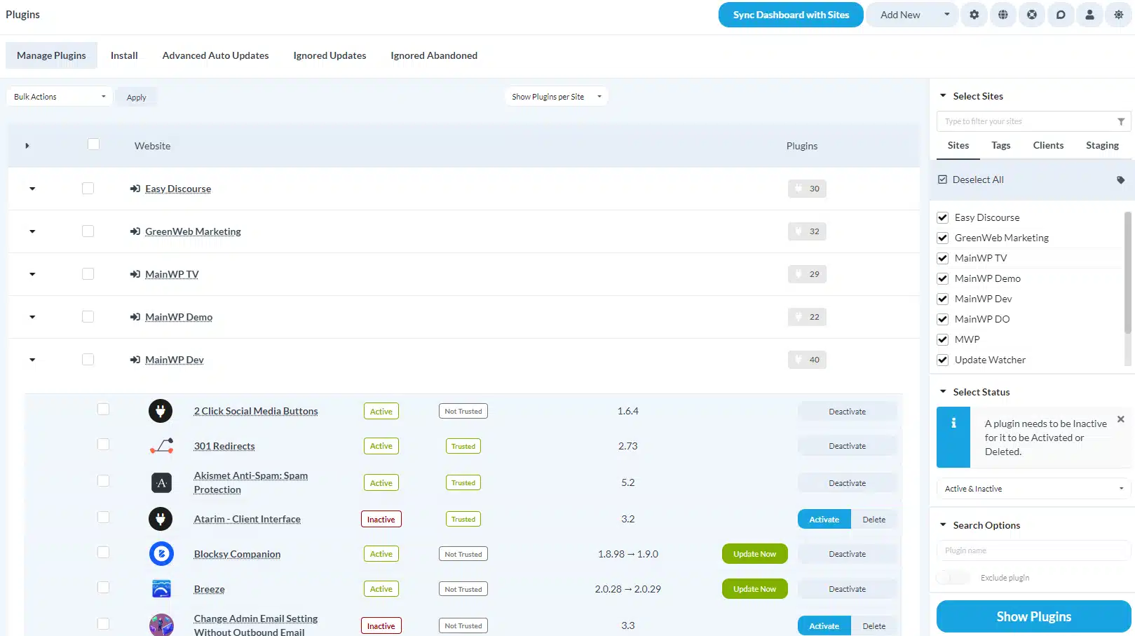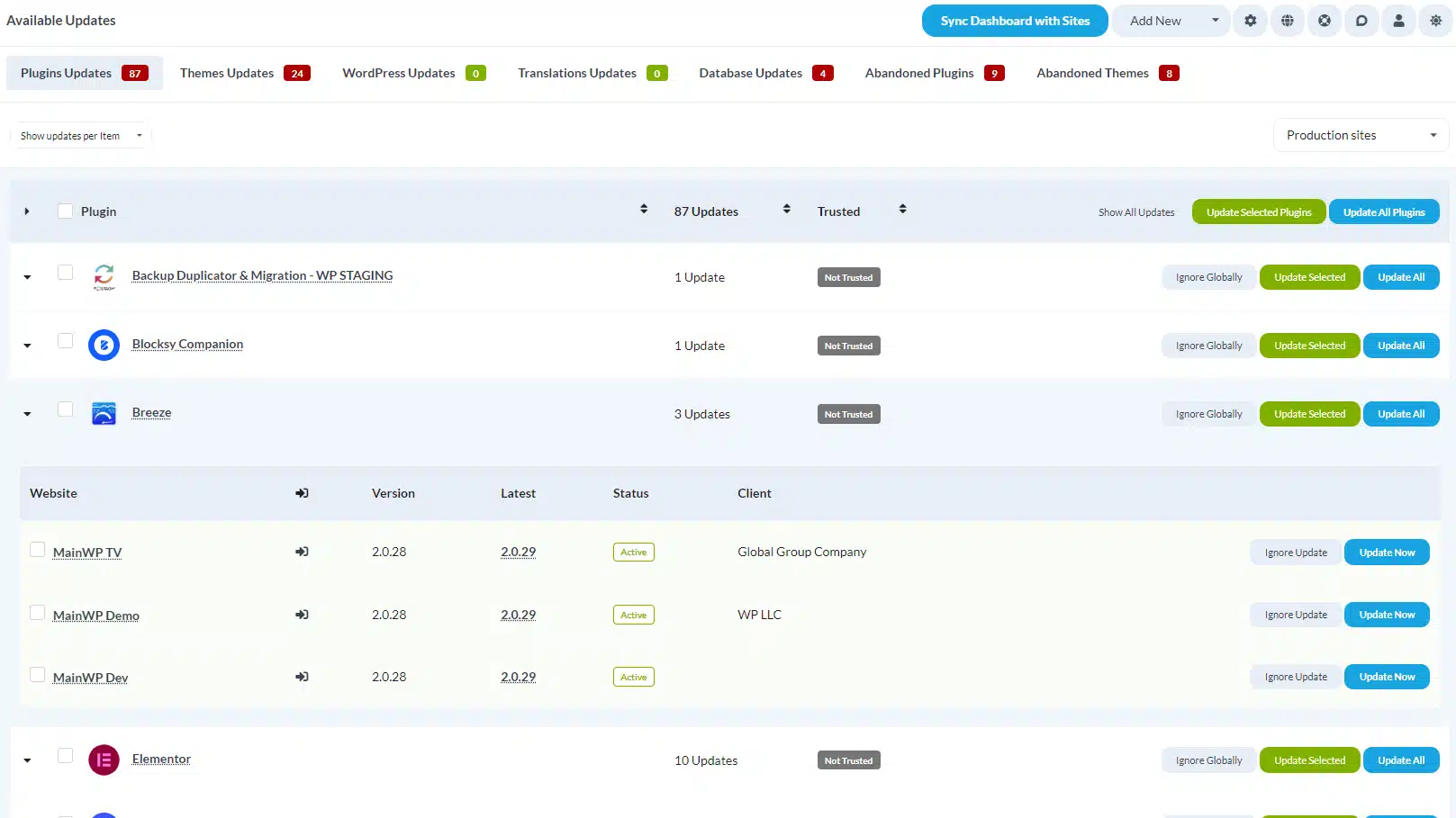 Fully monitored, automatic or manual plugin and theme updates and abandoned plugin tracking